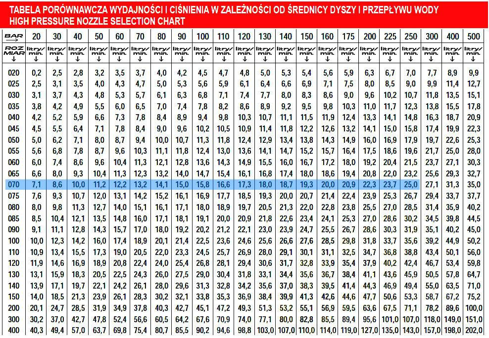 Ebben az ajánlatban 070 MÉRETŰ fúvókákat vásárolhat - lásd a fúvókaméret-kiválasztási táblázatot!