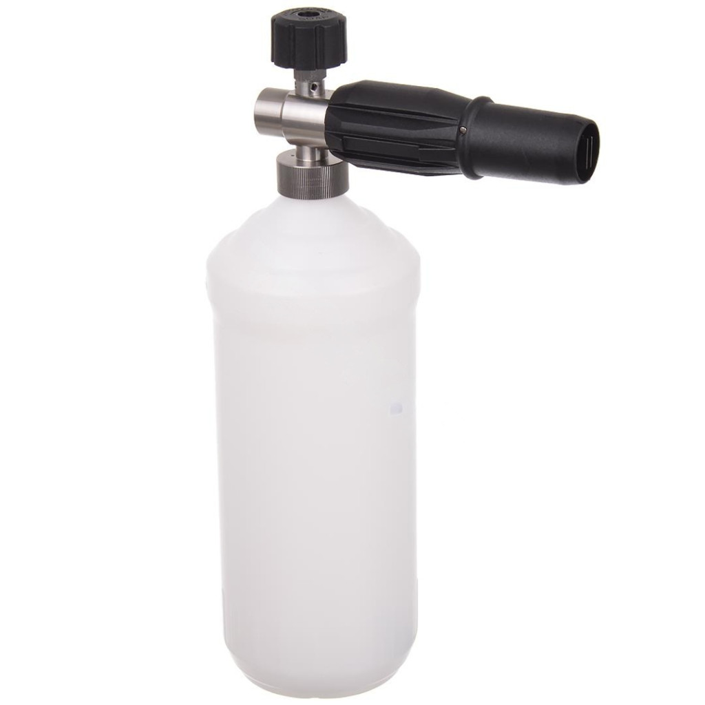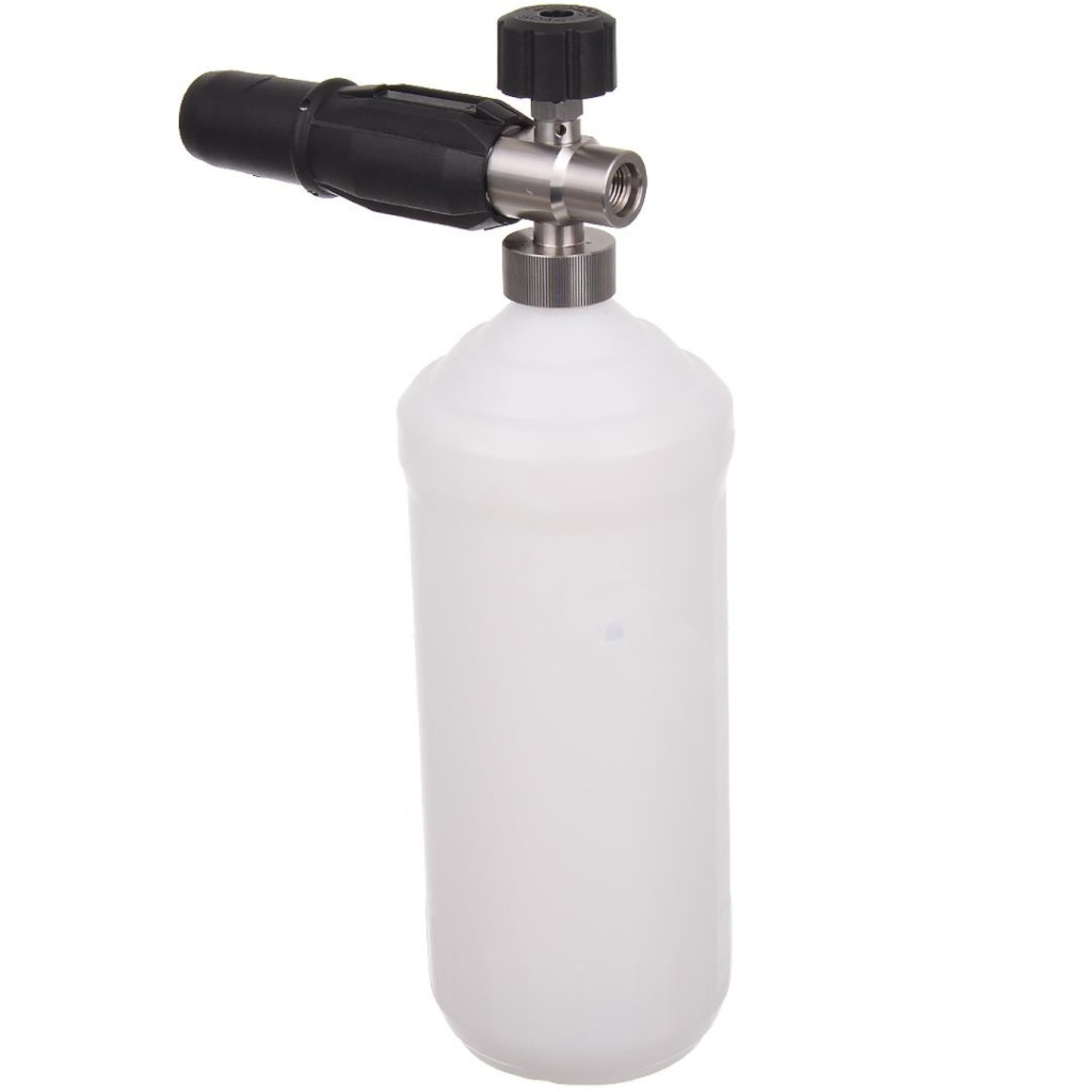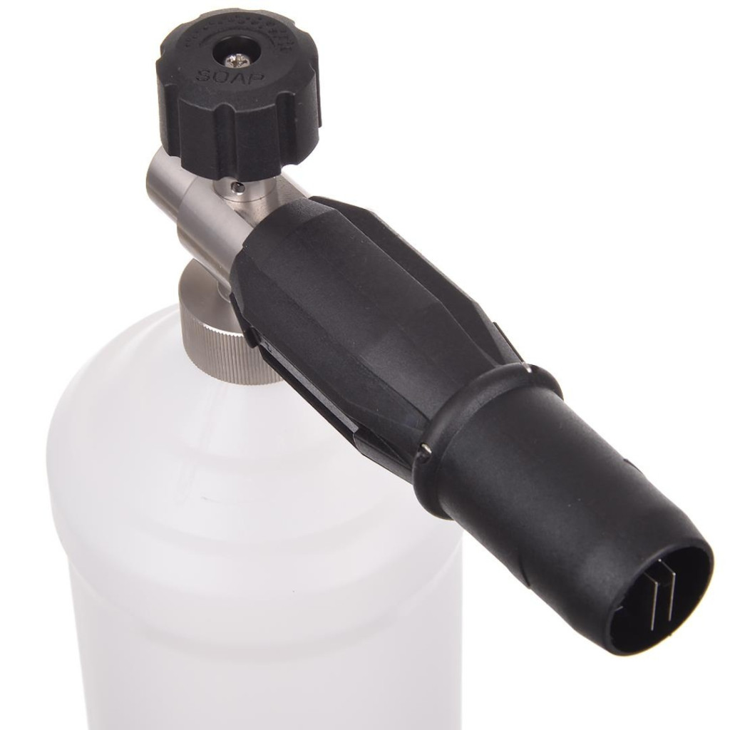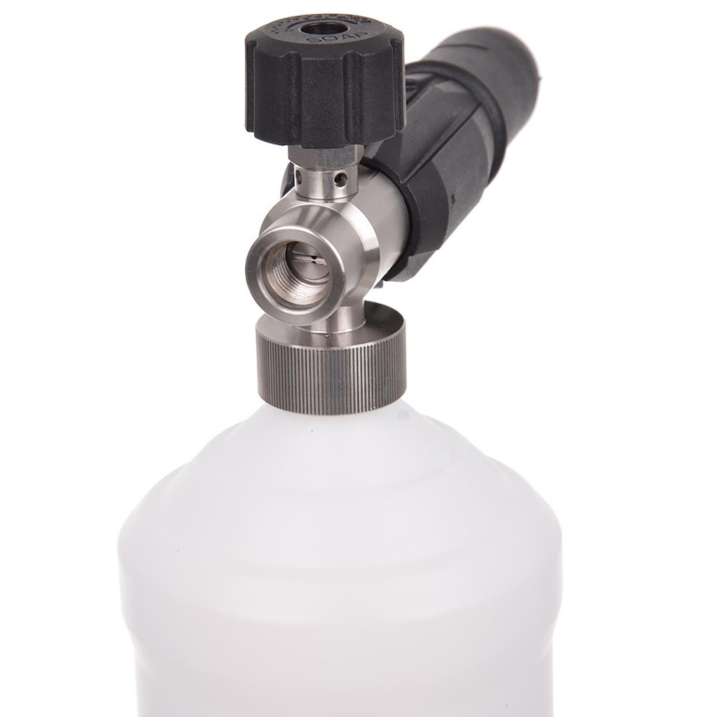 • Okos és kényelmes kialakítás: a mérőskálával ellátott 1 literes tartályban lévő felszívócső egy súllyal és előszűrővel van felszerelve. Ez a flexibilis megoldás biztosítja, hogy a habosítót bármilyen szögben megdöntve is folyamatos maradjon a vegyszer felszívása, a szűrő pedig megakadályozza a fúvóka eltömődését.