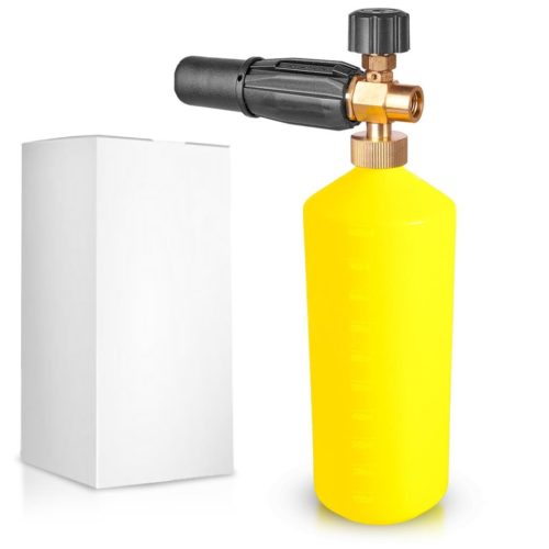 Nyomás: A legjobb teljesítmény 140 bar (2000 PSI) és 200 bar (3000 PSI) közötti nyomáson érhető el. A fúvóka segít a nyomás finomhangolásában a habosító tartályban a tisztítószer és a víz megfelelő arányú keveréséhez.