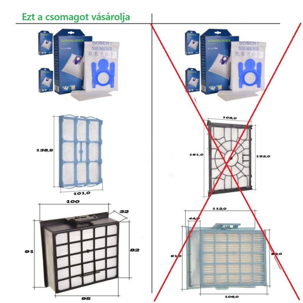 Mivel a Bosch és a Siemens porszívók kétféle szűrőt használnak (méretükben különböznek), FONTOS, hogy vásárlás előtt lemérje a meglévő szűrőit – lásd a mérettáblázatot. További készleteket is talál kínálatunkban. Kérjük, ellenőrizze és tájékozott döntést hozzon.