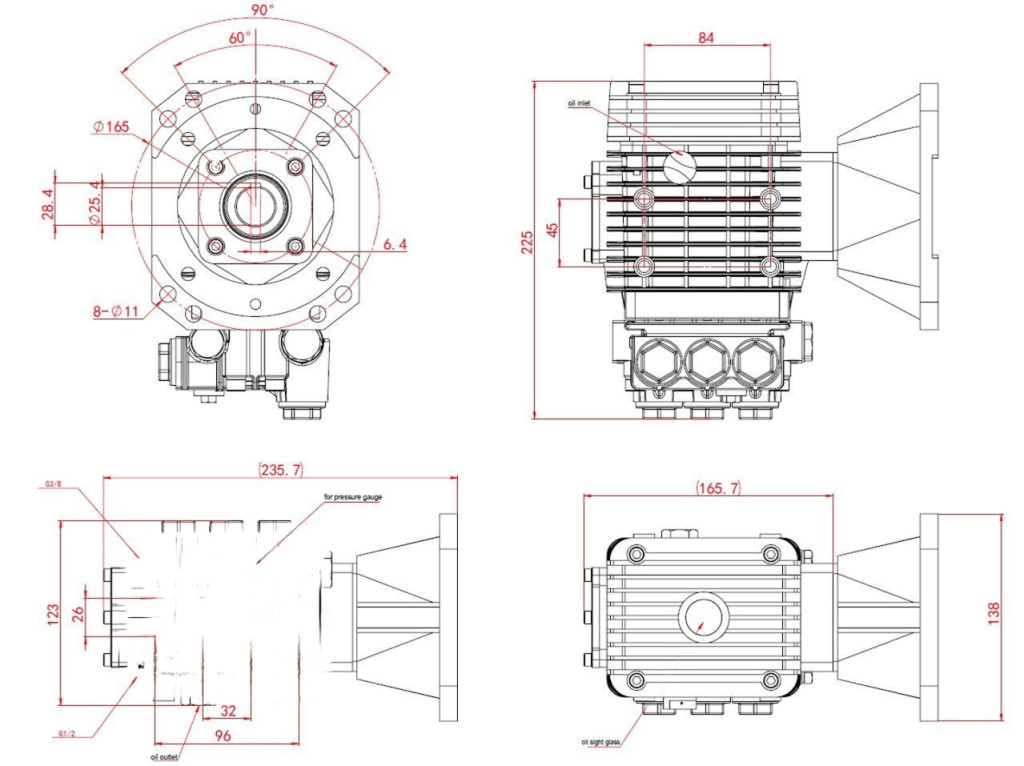 WZG 3 dugattyús főtengelyes szivattyú benzinmotoros magasnyomású mosókhoz 275 Bar, 15 liter/perc (sárgaréz fejjel)