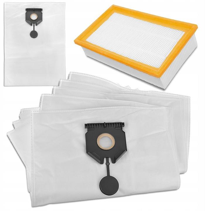 5 db szintetikus porzsák és 1 db szűrő Karcher NT 30/1 TACT, 40/1 TACT, 50/1 TACT porszívókhoz (2.889-154.0 / 2.889-155.0 cikkszámok kiváltására)