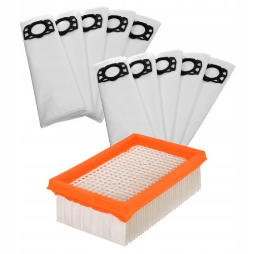 Szűrő és porzsákok csomagban Karcher WD4 WD5 WD6 porszívókhoz (2.863-006.0 cikkszám kiváltására) 1 db szűrő+10 db porzsák