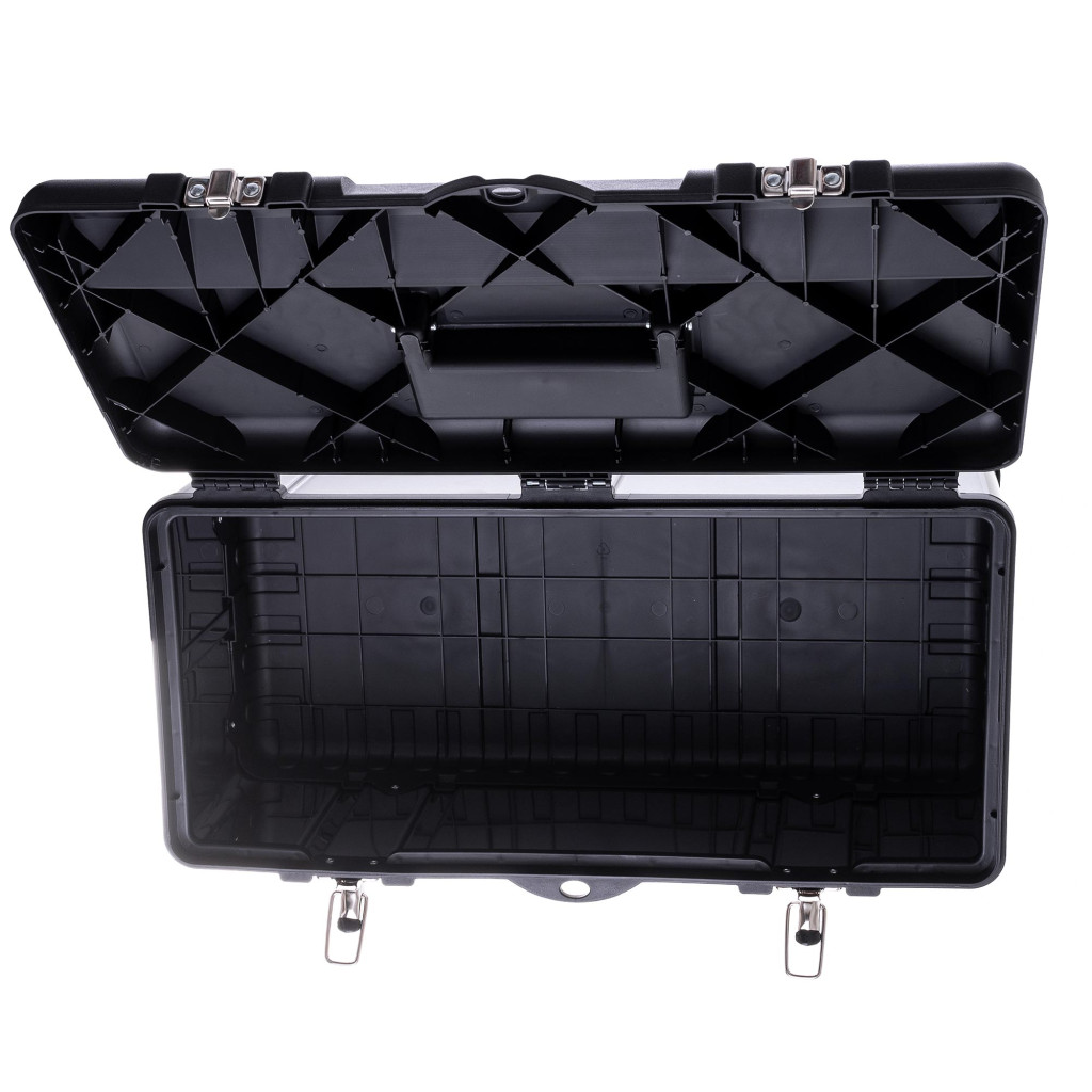 Masszív felépítésű doboz , rendkívül hasznos bármilyen műhelyben és azon túl is. A nagyobb tartósság érdekében a doboz teteje és alja tartós műanyagból, míg az oldalfalak rozsdamentes acélból készültek.