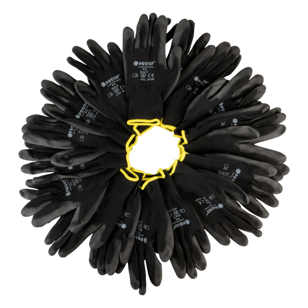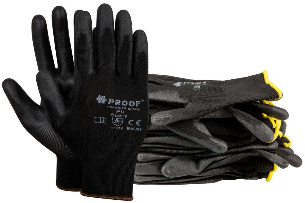 Fekete Poliuretán Bevonatú Kesztyűk - 10 pár, Magas Tapintási Érzékenységgel